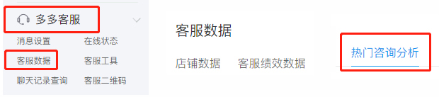 步:进入【拼多多管理后台】-【多多客服】-【客服数据】,找到热门咨询分析