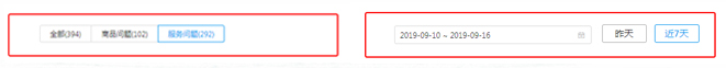第二步:选择想要查询的时间范围,默认是近7天。商家可以选择近1个月内的热门咨询,单次间隔多7天。根据自己的需求筛选查看【全部】或【商品问题】或【服务问题】