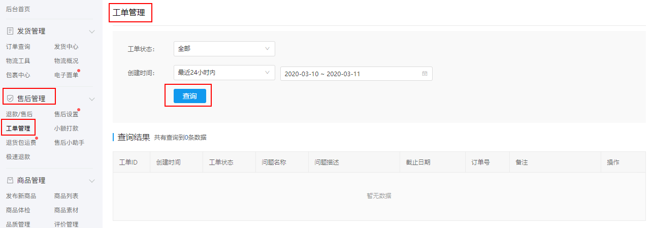 商家可以①在管理后台-【售后管理】-【工单管理】,查看工单详情和订单号。②进入订单详情页,查看打款补券记录。