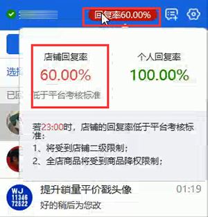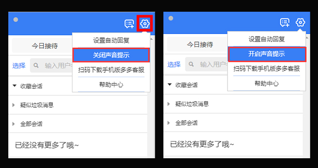 ③关注五分钟回复率,可以开启声音提示。例如:若原先是开启状态,则显示【关闭声音提示】