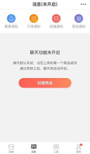 ①上传个商品且通过审核后,自动开启聊天功能。您可以在【商家版APP】-【消息】页面和买家聊天。