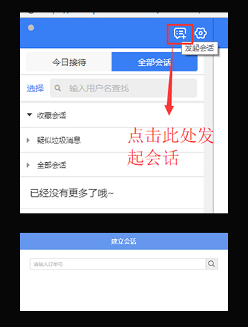 ②根据订单号,创建会话,主动跟买家进行沟通。近1天咨询过的消费者,商家可以主动发消息;近7天咨询过的消费者,商家至多主动发3条消息;超过7天未咨询、但在店铺近一个月有下单或未完结售后等情况的消费者,商家至多主动发送1条消息。