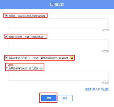 ④可以设置四种状态下的自动回复,减轻客服压力。