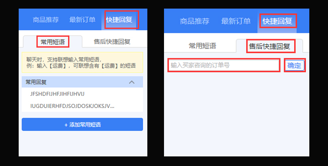 ③快捷回复:客服可以设置常用短语及售后快捷回复,提高效率。